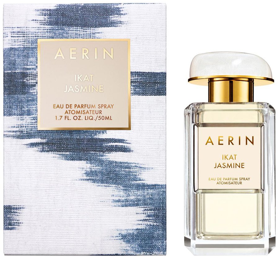 Aerin Lauder (Эрин Лаудер), внучка Estee Lauder (Эсте Лаудер), основала собственный бренд в 2011 году. С тех пор продукция бренда - косметика, товары для дома, украшения и сумочки - становится все более и более популярной. В ноябре 2013 года Aerin Lauder дебютирует на парфюмерном рынке с коллекцией из пяти ароматов: Gardenia Rattan, Amber Musk, Lilac Path, Ikat Jasmine и Evening Rose. Идея коллекции - аромат для каждого настроения и времени года. Все композиции новой коллекции были разработаны в сотрудничестве с парфюмерами из Firmenich. Вдохновением для коллекции послужили ткани, которые Эрин использует в своих работах. Внешние коробки ароматов также декорированы орнаментами, которые используются в коллекциях . Флаконы увенчаны красивыми колпачками с разноцветными камнями: светло-зеленый - у Gardenia Rattan, бледно-коричневый - у Amber Musk, нежно-розовый - у Lilac Path, белый - у Ikat Jasmine и фиолетовый - у Evening Rose. Ikat Jasmine - аромат-воплощение современной женщины: стильная легкость плюс интригующая женственность. Сердце аромата образуют жасмин самбак и египетский жасмин, окруженные нотами экзотической туберозы, жимолости и сандала. Бело-синяя внешняя упаковка вдохновлена обоями, которые украшали стены детской Эрин. Лицом рекламной кампании стала сама Эрин. На фотографиях она позирует на фоне Палм-Бич в платье с цветами от Valentino.
