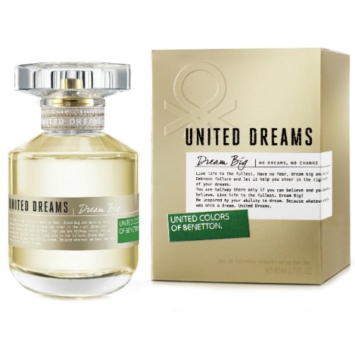 Benetton United Dreams Dream Big – многогранный букет, собранный из древесных, цветочных и мускусных нот. Роскошная композиция запечатана в оригинальный дизайнерский флакон. Она подчеркивает образ женщины, придает ей особый шарм. Утонченный шлейф пропитан древесными аккордами.