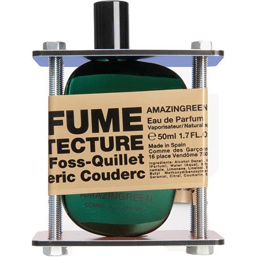 Amazingreen Architecture от Comme Des Garcons — это аромат для мужчин и женщин, он принадлежит к группе фужерные зеленые. Этот аромат Amazingreen Architecture выпущен в 2013 году. Раскрывается аромат свежестью ароматной весенней зелени, самобытным тоном пальмой древесины, акватическими мотивами, с характерными бликами черного перца, которые придают вступительному аккорду особую пикантность. Сердечные регистры представлены глубокими насыщенными тонами плюща, пудрово-цветочными аккордами ириса и эксцентричными оттенками пряного кориандра. В финальном аккорде слышны горьковато-дымные оттенки ветивера, манящие, таинственные нотки ладана, горьковатый запах пороха и волнующие мотивы белого мускуса, придающие аромату легкие акценты авантюризма.