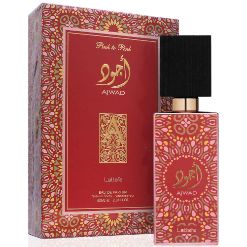Ajwad Pink to Pink от Lattafa Perfumes — это аромат для мужчин и женщин, он принадлежит к группе пряные. Аромат Ajwad Pink to Pink выпущен в 2024 году. Верхние ноты: Гуава, Розовый грейпфрут, Личи и Розовый перец; средние ноты: Роза, Пион и Магнолия; базовые ноты: Кожа, Мускус, Серая амбра, Ваниль и Мох.