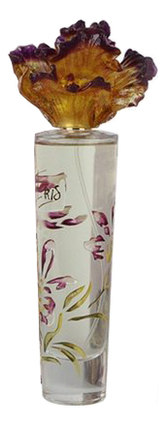 Утонченный высокий флакон с красивым скульптурным изображением цветущего ириса на колпачке идеально отражает красоту заключенного в нем парфюма и станет украшением любого туалетного столика.